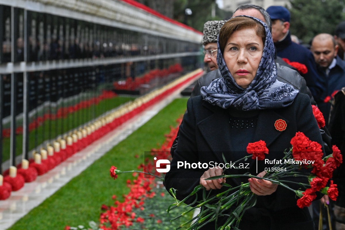 20 Yanvar faciəsinin 36-cı ildönümü ilə əlaqədar Şəhidlər xiyabanını ziyarət edən Azərbaycan Respublikasının Ailə, Qadın və Uşaq Problemləri üzrə Dövlət Komitəsinin sədri Bahar Muradova.