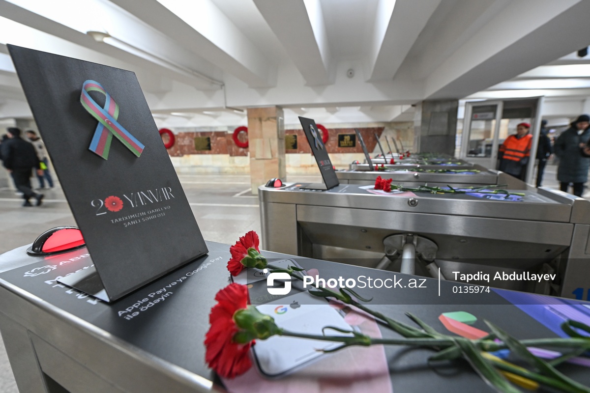 “Bakı Metropoliteni”nin "20 yanvar" stansiyasında 20 Yanvar Hüzn Günü ilə bağlı anım tədbiri keçirilib. Stansiya platformasında qərənfillərdən ibarət kompozisiya yaradılıb, metropoliten əməkdaşları və sərnişinlər 20 Yanvar şəhidlərini yad edib. Saat 12:00-da metronun bütün stansiyalarında şəhidlərin ruhu bir dəqiqəlik sükutla yad edilib, qatarlardan bir dəqiqə ərzində fit verilib.