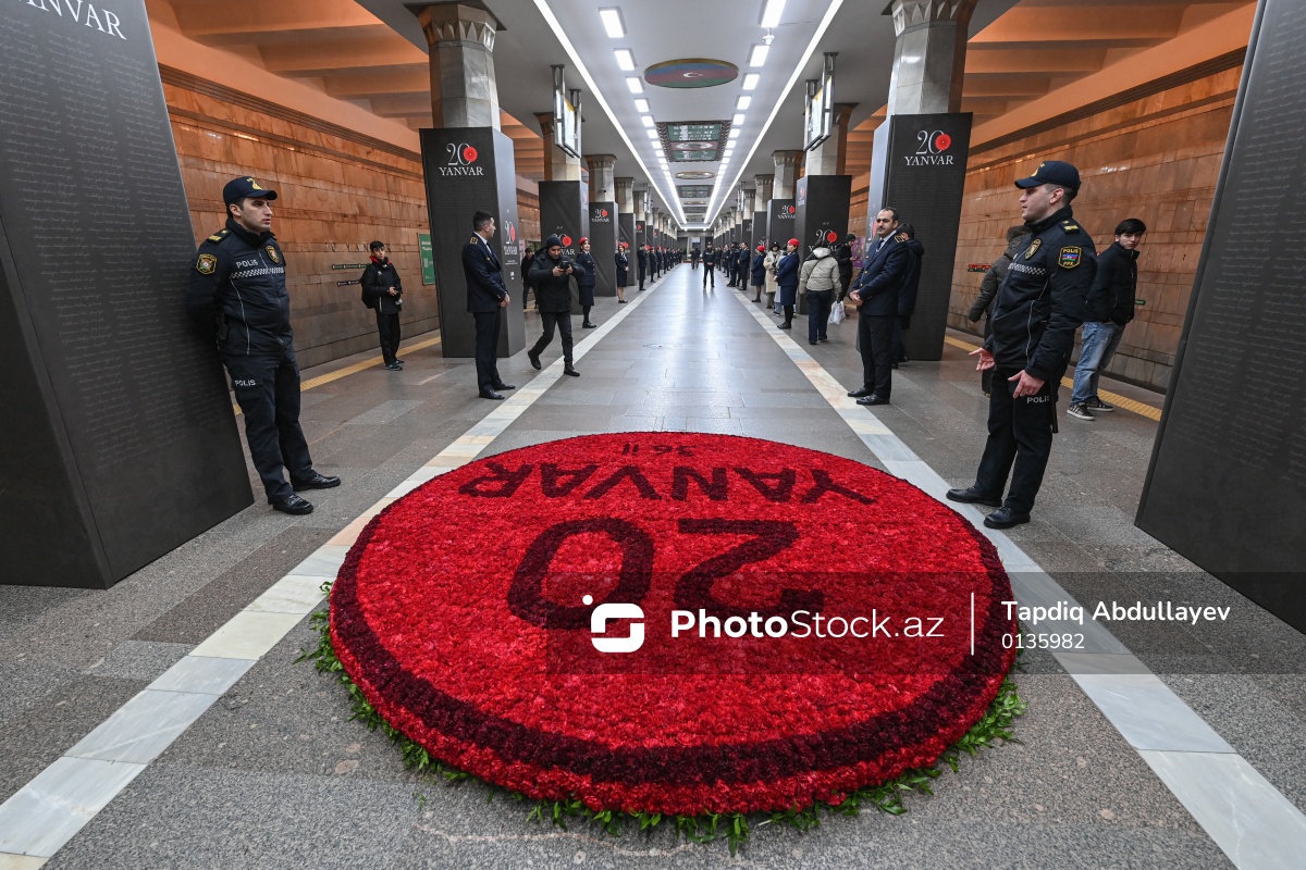 “Bakı Metropoliteni”nin "20 yanvar" stansiyasında 20 Yanvar Hüzn Günü ilə bağlı anım tədbiri keçirilib. Stansiya platformasında qərənfillərdən ibarət kompozisiya yaradılıb, metropoliten əməkdaşları və sərnişinlər 20 Yanvar şəhidlərini yad edib. Saat 12:00-da metronun bütün stansiyalarında şəhidlərin ruhu bir dəqiqəlik sükutla yad edilib, qatarlardan bir dəqiqə ərzində fit verilib.