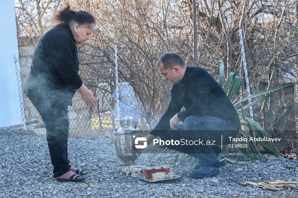 Xocavənd rayonunun Hadrut qəsəbəsinin sakinləri Ramilə Gözəlova (sol) və oğlu Orxan Gözəlov (sağ).