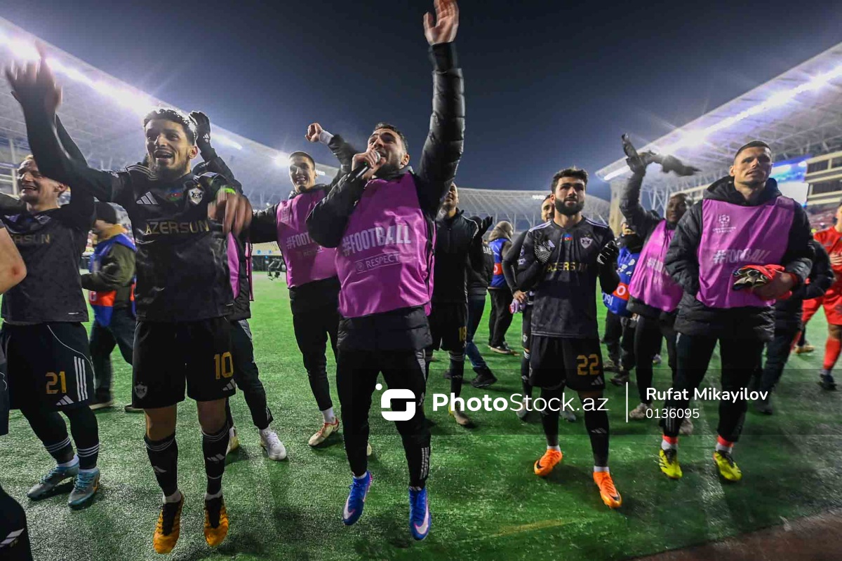 "Qarabağ" futbol klubunun UEFA Çempionlar Liqasının əsas mərhələsinin VII turunda "Ayntraxt" (Frankfurt) üzərində 3:2 hesablı qələbə sevinci.