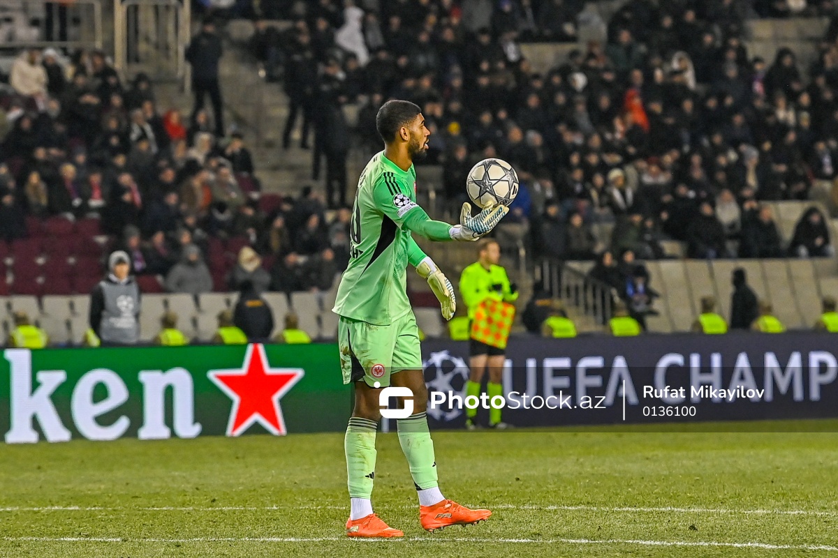 21.01.2026 Tofiq Bəhramov adına Respublika stadionu, UEFA Çempionlar Liqasının "Qarabağ" - "Ayntraxt" oyununda "Ayntraxt" komandasının qapıçısı Kaua Santos.