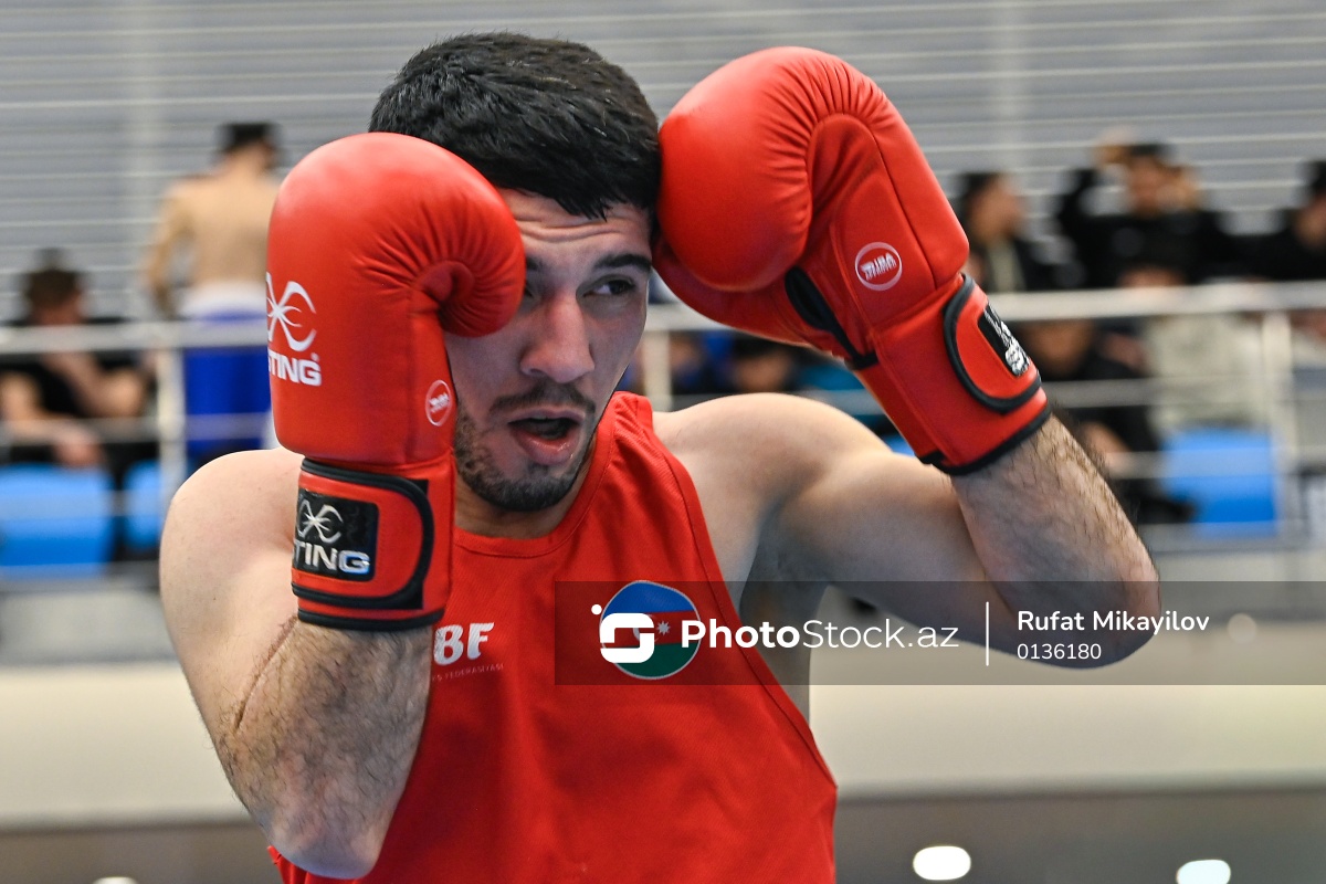 Boks üzrə Azərbaycan çempionatında mübarizə aparan Nicat Mirzəyev.