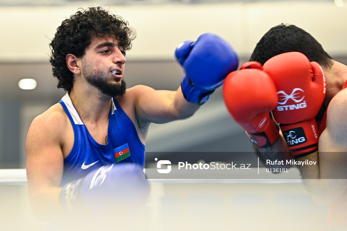 Boks üzrə Azərbaycan çempionatında mübarizə aparan Murad Ocaqquliyev (sol) və Nicat Mirzəyev (sağ).