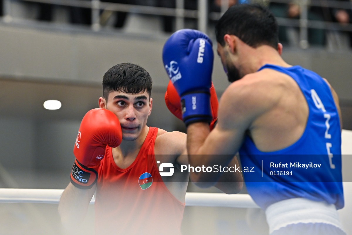 Boks üzrə Azərbaycan çempionatında mübarizə aparan Mahmud Hüseynov (sol) və Ruslan Rüstəmov (sağ).