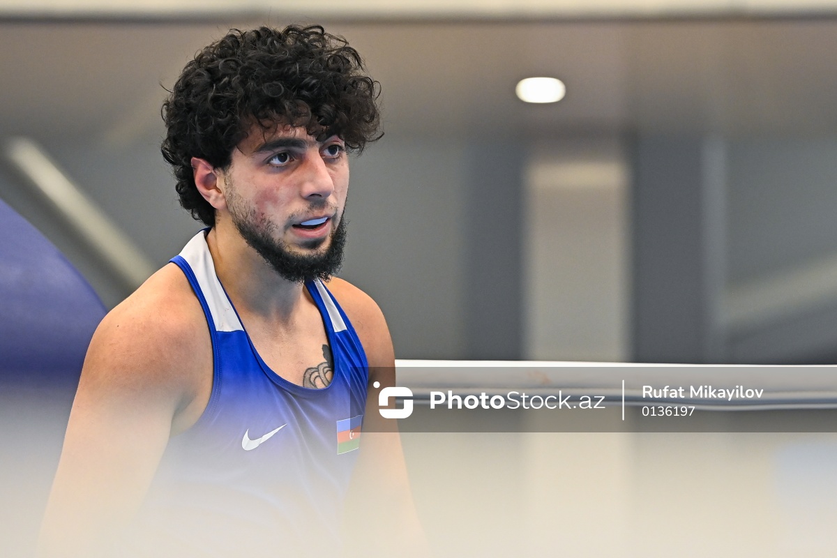 Boks üzrə Azərbaycan çempionatında mübarizə aparan Murad Ocaqquliyev.