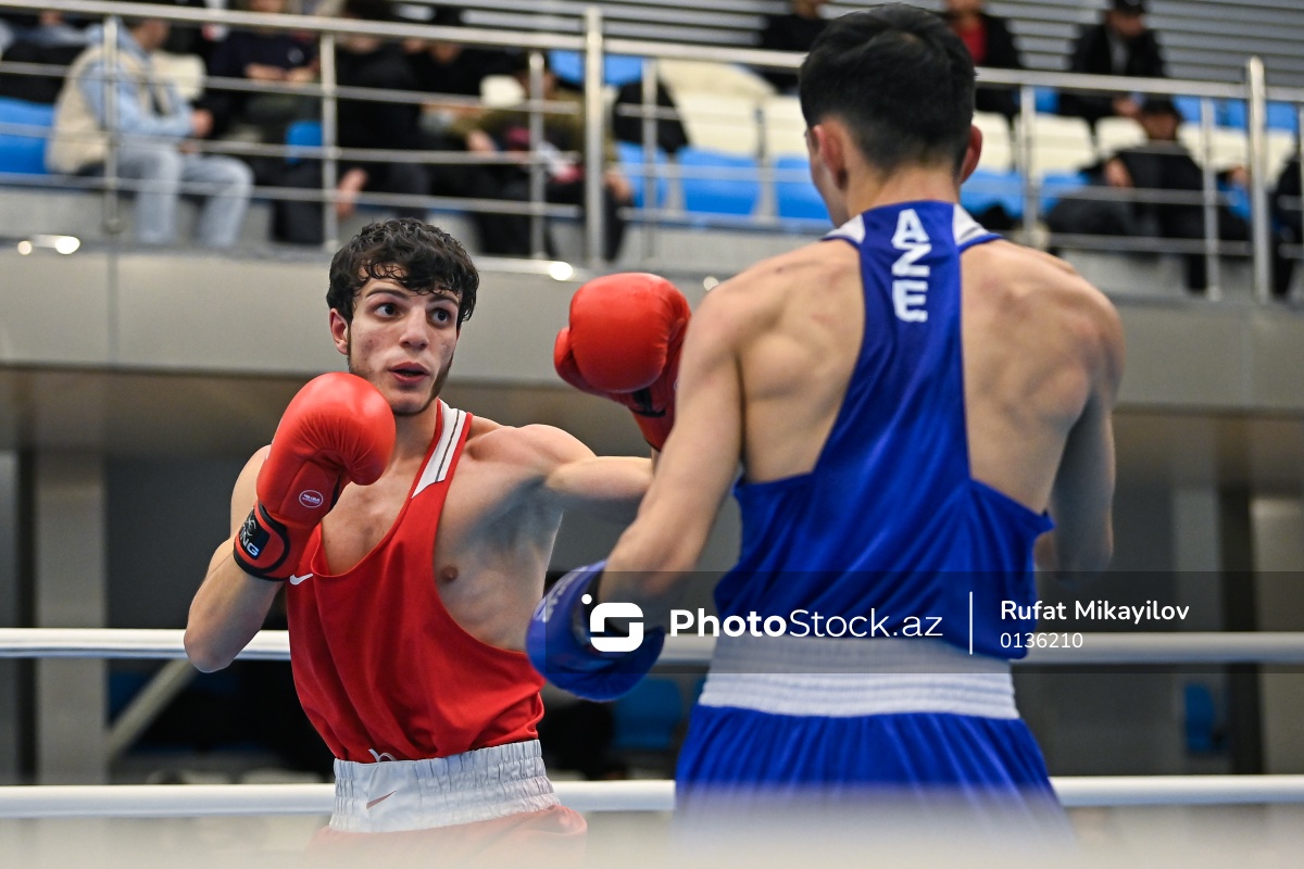 Boks üzrə Azərbaycan çempionatında mübarizə aparan Nadir Məlikov (sol) və Həbib Bünyatov (sağ).