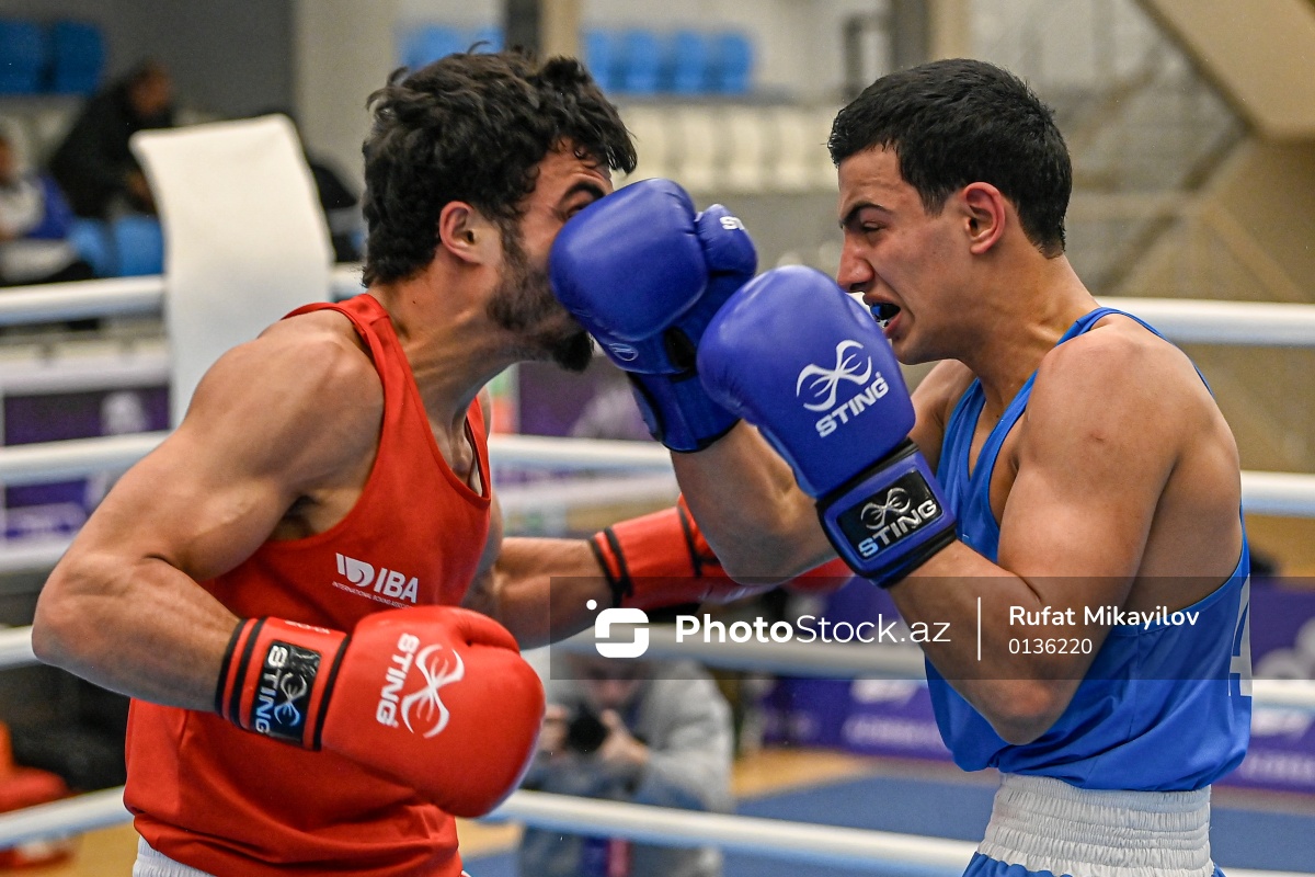 Boks üzrə Azərbaycan çempionatında mübarizə aparan Zaur Qəhrəmanov (sol) və Ülvi Mirzəyev (sağ).