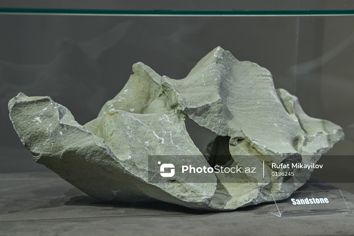 Bakı Dövlət Universitetinin Faydalı qazıntılar muzeyində nümayiş olunan "Sandstone" daşı.
