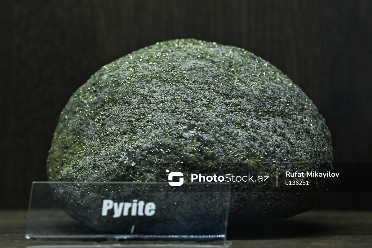 Bakı Dövlət Universitetinin Faydalı qazıntılar muzeyində nümayiş olunan "Pyrite" daşı.