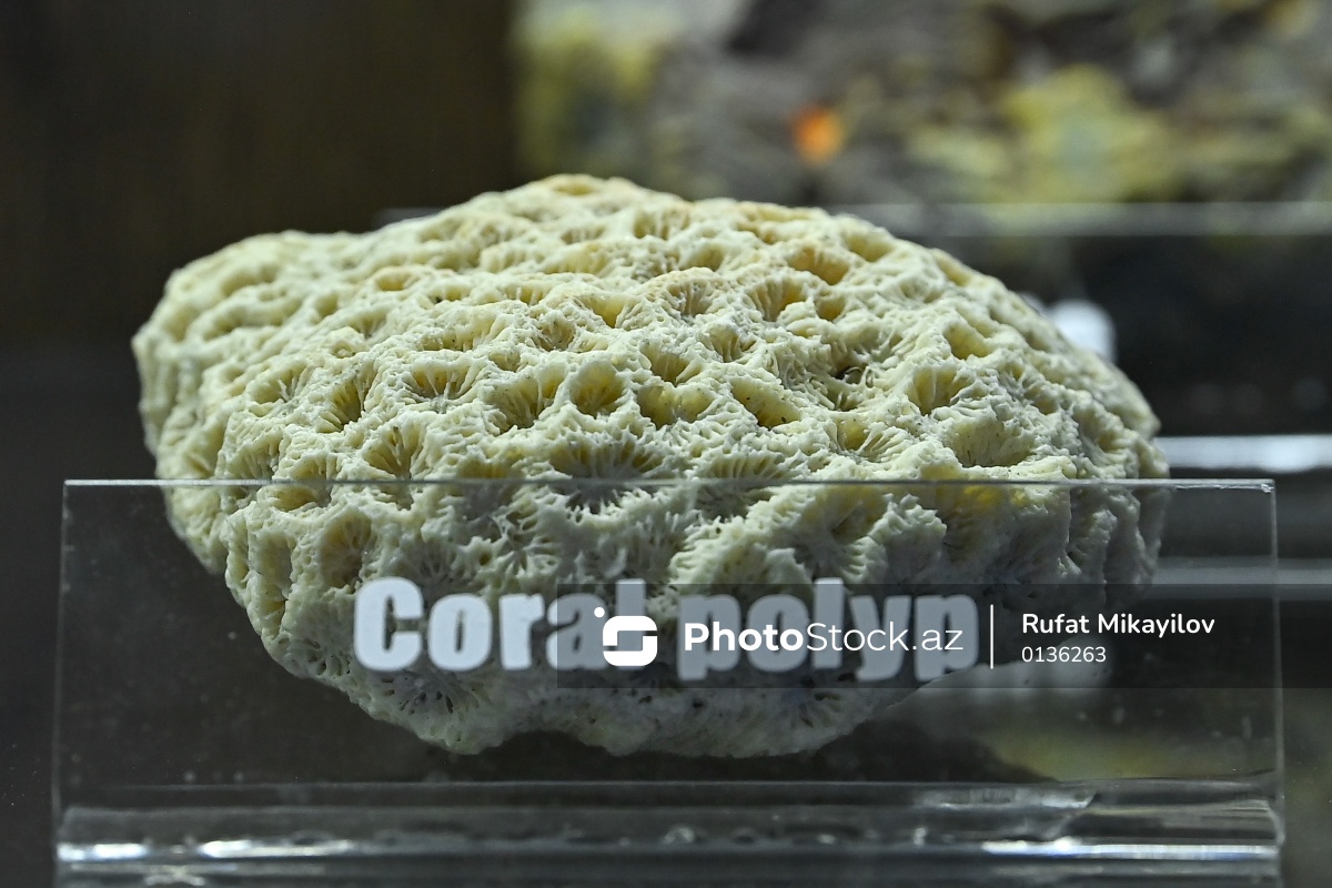 Bakı Dövlət Universitetinin Faydalı qazıntılar muzeyində nümayiş olunan "Coral polyp" daşı.