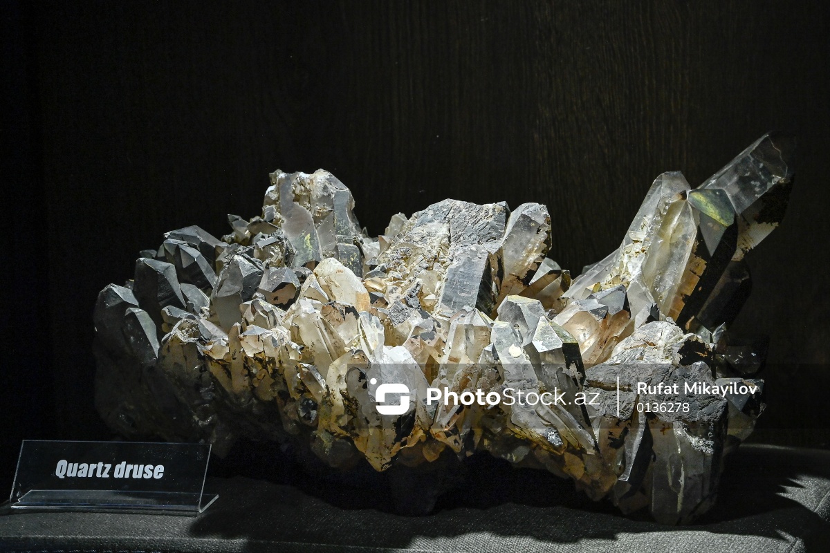 Bakı Dövlət Universitetinin Faydalı qazıntılar muzeyində nümayiş olunan "Quartz druse" daşı.