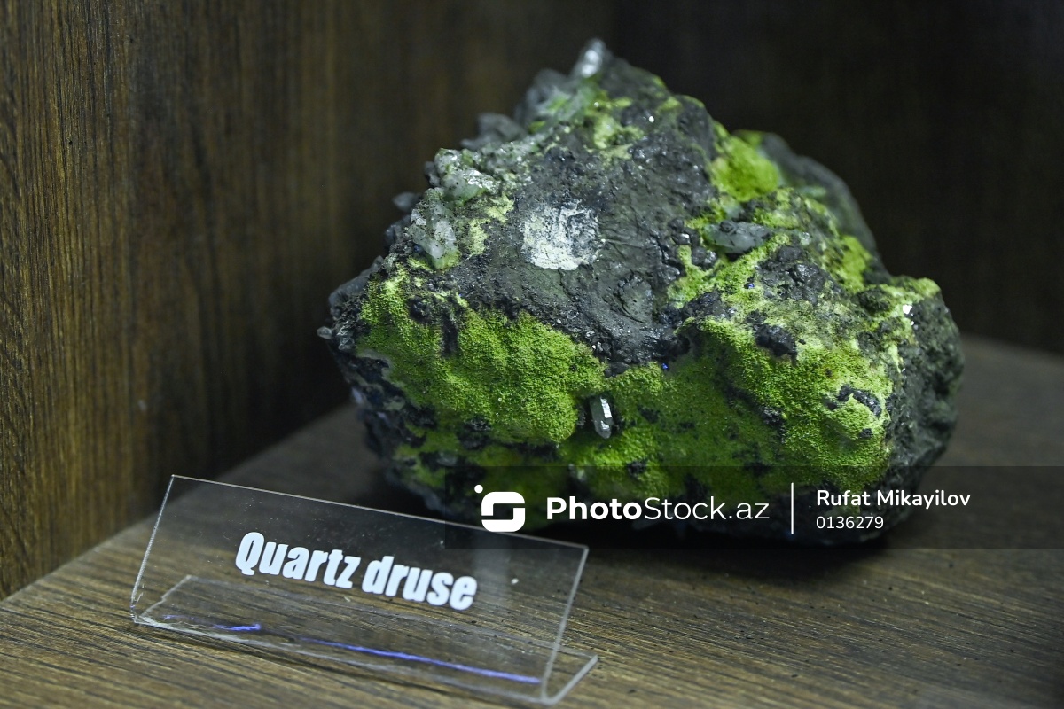 Bakı Dövlət Universitetinin Faydalı qazıntılar muzeyində nümayiş olunan "Quartz druse" daşı.