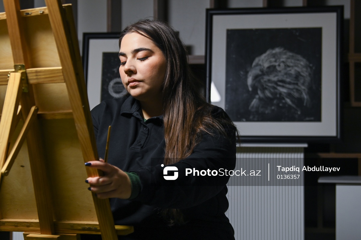 Qrataj texnikası ilə Vətən sevgisini təsvir edən rəssam Ləman Həsənzadə