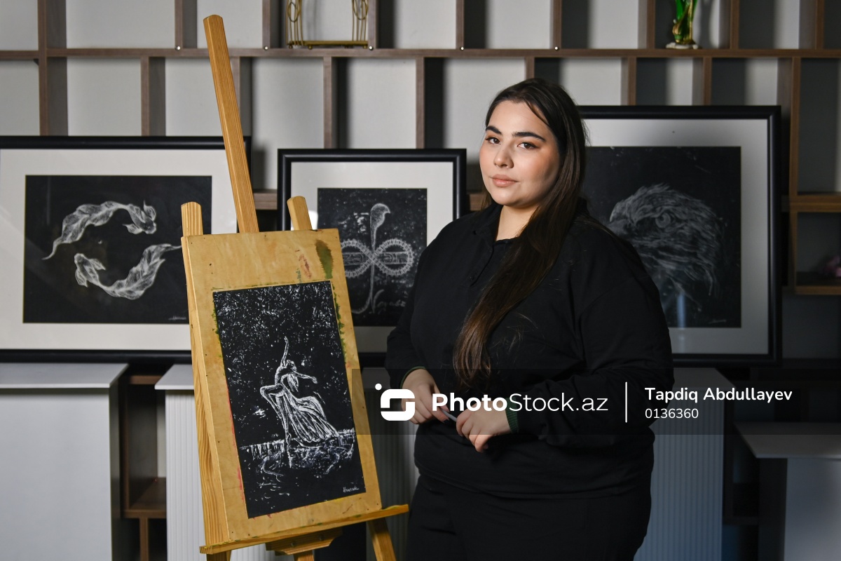 Qrataj texnikası ilə Vətən sevgisini təsvir edən rəssam Ləman Həsənzadə