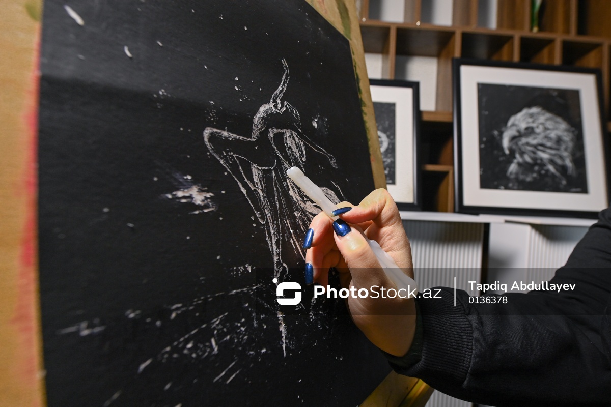 Qrataj texnikası ilə Vətən sevgisini təsvir edən rəssam Ləman Həsənzadə