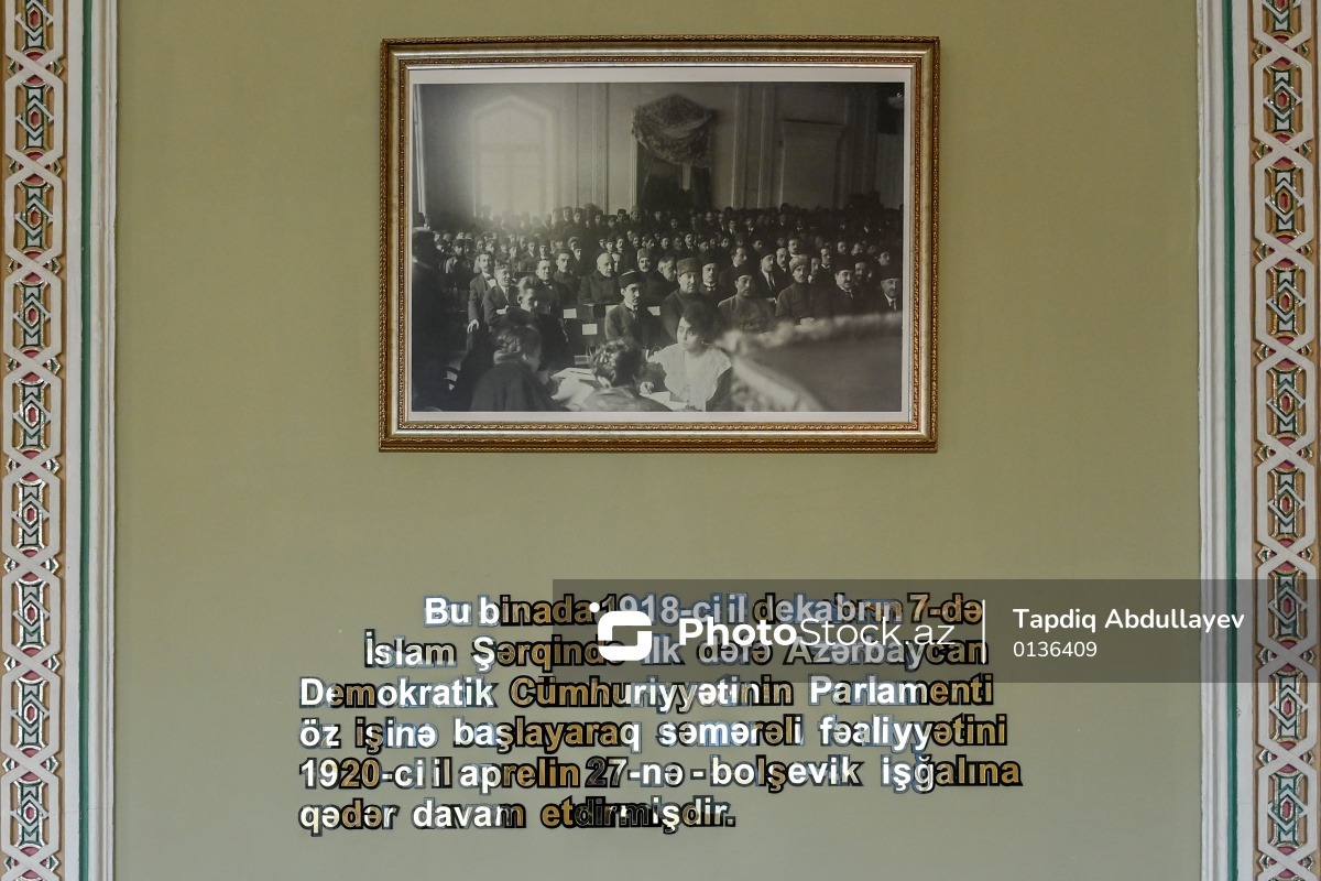 Azərbaycan Milli Elmlər Akademiyası Məhəmməd Füzuli adına Əlyazmalar İnstitutu 1898-1901-ci illərdə milyonçu Hacı Zeynalabdin Tağıyev tərəfindən Qızlar məktəbi olaraq inşa edilib. Binanın layihə müəllifi 1892-1904-cü illərdə Bakının baş memarı olmuş İ.V.Qoslavskidir. Orta əsrlər Şərq memarlığının ən gözəl elementlərini özündə əks etdirən binada 1915-ci ilin sentyabrından pedaqoji kurslar fəaliyyətə başlasa da, iki il sonra iqtisadi çətinliklər səbəbilə fəaliyyətini dayandırıb. 1918-ci il dekabrın 7-də Tağıyevin Qızlar məktəbinin binasında Azərbaycan Xalq Cümhuriyyəti Parlamentinin təntənəli açılış mərasimi olub. Həmin il Cümhuriyyətin ilk bayrağı da məhz bu binada qəbul edilib. Sovet hakimiyyəti qurulduqdan sonra Azərbaycan SSR Ali Soveti bu binada yerləşib. 1920-1937-ci illərdə görkəmli mütəfəkkir şair-dramaturq Hüseyn Cavid binanın üçüncü mərtəbəsində yaşayıb. 1982-ci ildə isə Azərbaycan Elmlər Akademiyasının Əlyazmalar İnstitutu buraya köçürülüb.