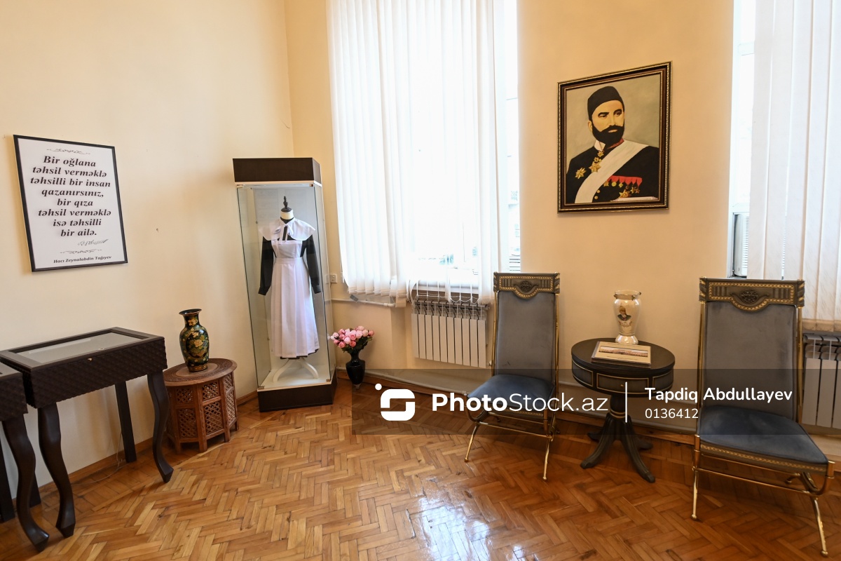 Azərbaycan Milli Elmlər Akademiyası Məhəmməd Füzuli adına Əlyazmalar İnstitutu 1898-1901-ci illərdə milyonçu Hacı Zeynalabdin Tağıyev tərəfindən Qızlar məktəbi olaraq inşa edilib. Binanın layihə müəllifi 1892-1904-cü illərdə Bakının baş memarı olmuş İ.V.Qoslavskidir. Orta əsrlər Şərq memarlığının ən gözəl elementlərini özündə əks etdirən binada 1915-ci ilin sentyabrından pedaqoji kurslar fəaliyyətə başlasa da, iki il sonra iqtisadi çətinliklər səbəbilə fəaliyyətini dayandırıb. 1918-ci il dekabrın 7-də Tağıyevin Qızlar məktəbinin binasında Azərbaycan Xalq Cümhuriyyəti Parlamentinin təntənəli açılış mərasimi olub. Həmin il Cümhuriyyətin ilk bayrağı da məhz bu binada qəbul edilib. Sovet hakimiyyəti qurulduqdan sonra Azərbaycan SSR Ali Soveti bu binada yerləşib. 1920-1937-ci illərdə görkəmli mütəfəkkir şair-dramaturq Hüseyn Cavid binanın üçüncü mərtəbəsində yaşayıb. 1982-ci ildə isə Azərbaycan Elmlər Akademiyasının Əlyazmalar İnstitutu buraya köçürülüb.