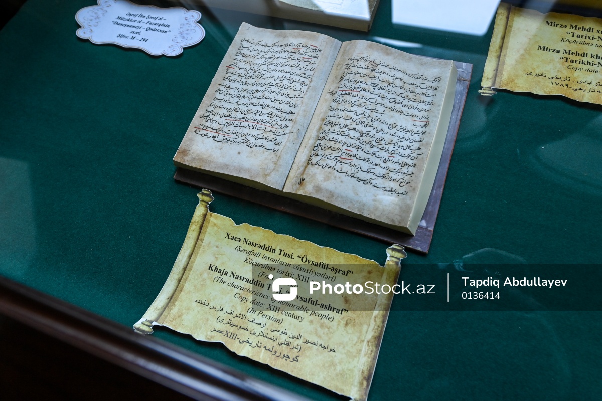 Azərbaycan Milli Elmlər Akademiyası Məhəmməd Füzuli adına Əlyazmalar İnstitutunda saxlanılan Xacə Nəsrəddin Tusinin "Övsafül-əşraf" kitabı.