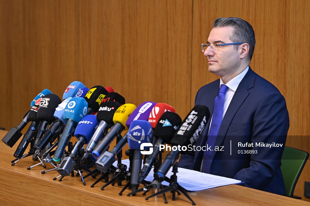 2025-ci ilin yekunlarına həsr olunan mətbuat konfransında çıxış edən DOST Agentliyinin İdarə Heyətinin sədri Fərid Məmmədov.