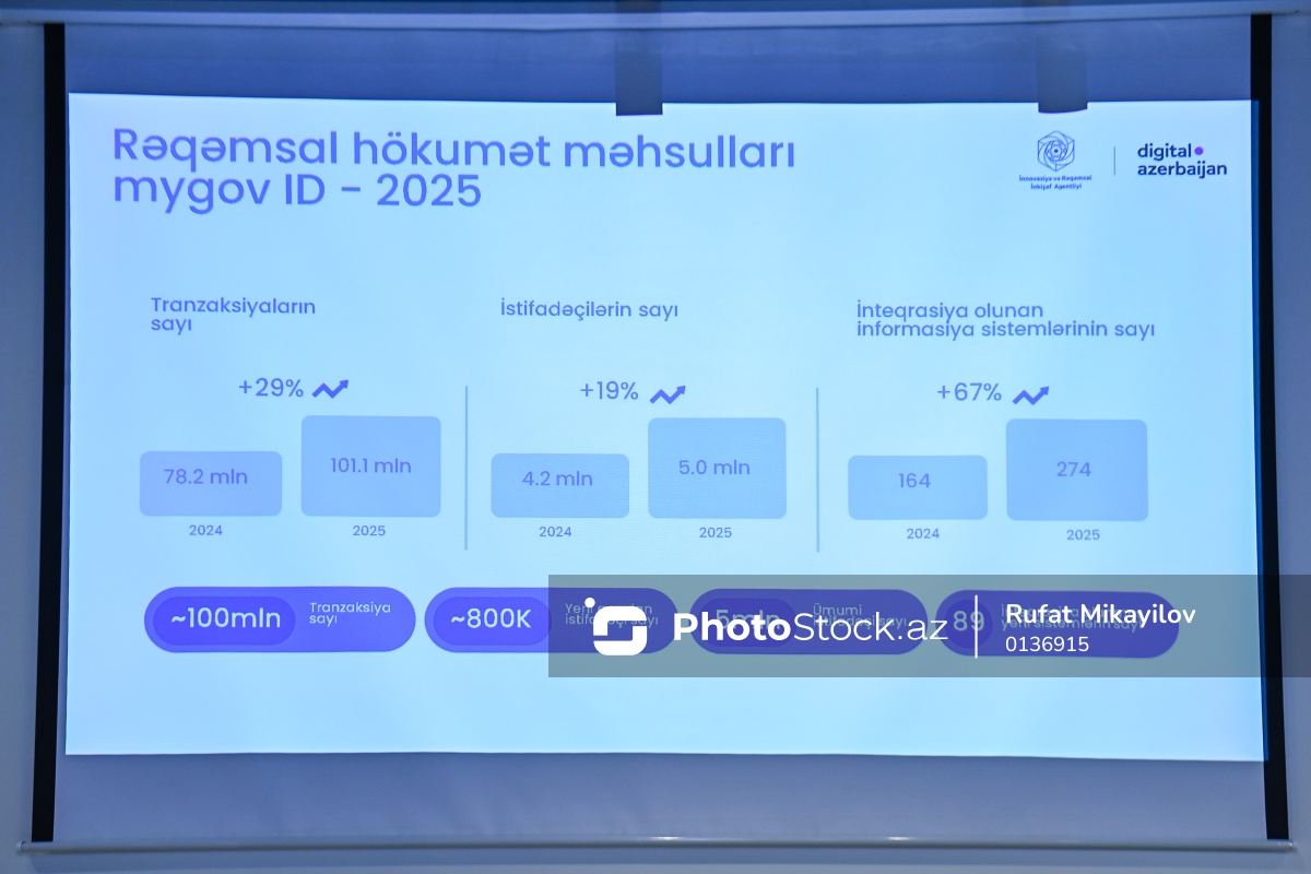 İnnovasiya və Rəqəmsal İnkişaf Agentliyinin 2025-ci ilin yekunlarına həsr olunan mətbuat konfransı keçirilib. Tədbirdə çıxış edən Agentliyin İdarə Heyətinin sədri Fərid Osmanov bildirib ki, 2025-ci ildə "MyGovID" istifadəçilərinin sayı artıq 5 milyon nəfəri keçib və gündəlik əsasda müvafiq platforma vasitəsilə istifadəçilər digər informasiya sistemlərinə və resurslarına keçid edə bilirlər. 0nun sözlərinə görə, qanunvericiliyin tələbinə uyğun olaraq vahid giriş sistemi mərkəzləşdirilmiş formada aidiyyəti dövlət sistemlərinə və informasiya sistemlərinə inteqrasiya olunur. Fərid Osmanov ötən il 1 milyondan çox yeni istifadəçinin platformaya qoşulduğunu diqqətə çatdırıb. O, qeyd edib ki, ümumi istifadəçi sayı 2,3 dəfə artaraq 2 milyonu keçib. Rəqəmsal sənədlərin istifadəsi ötən ildə 2 milyondan çox olub, hesabat dövründə 360-dan çox xidmətə vətəndaşlar tərəfindən müraciət olunub.