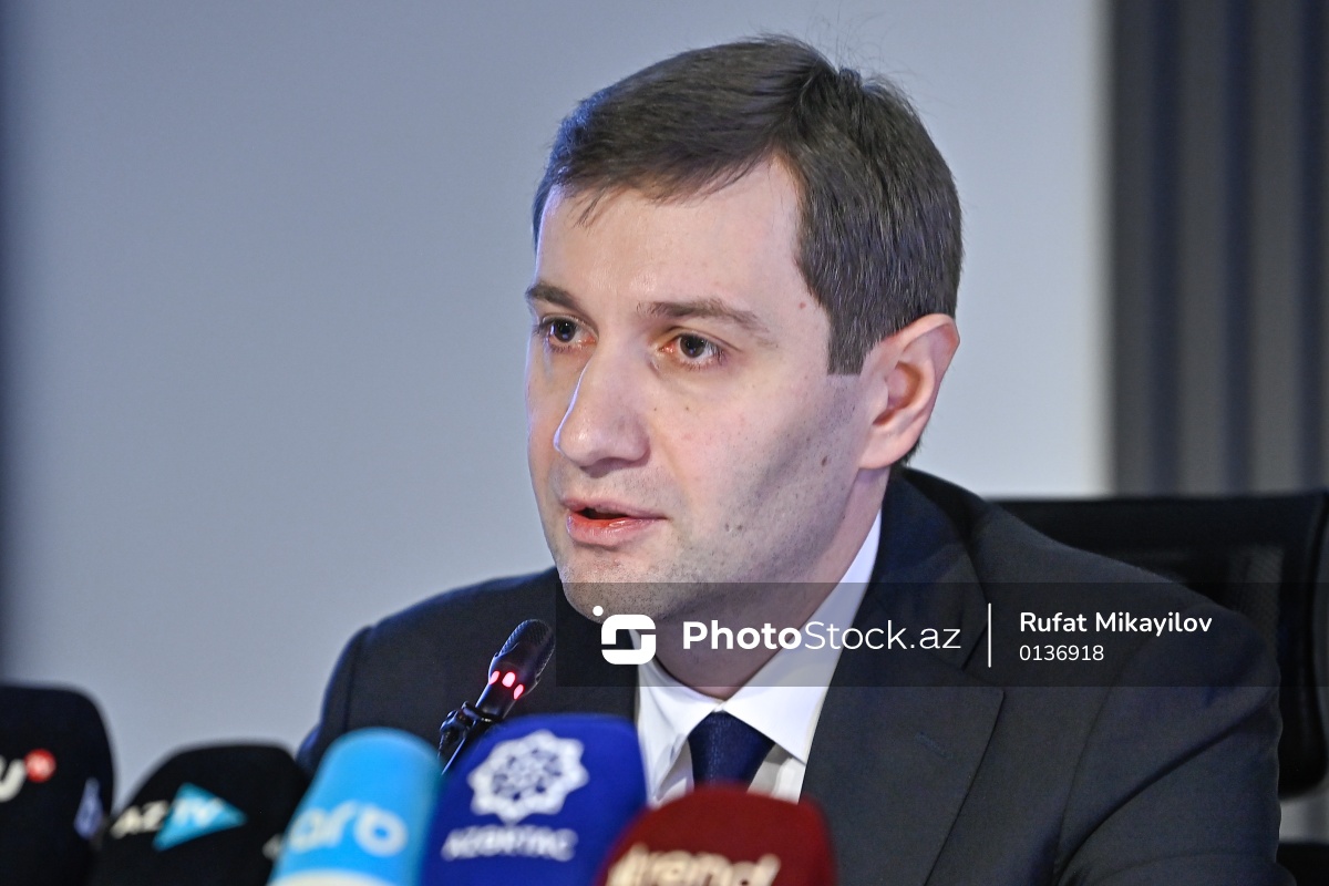 2025-ci ilin yekunlarına həsr olunan mətbuat konfransında çıxış edən İnnovasiya və Rəqəmsal İnkişaf Agentliyinin İdarə heyətinin sədri Fərid Osmanov.