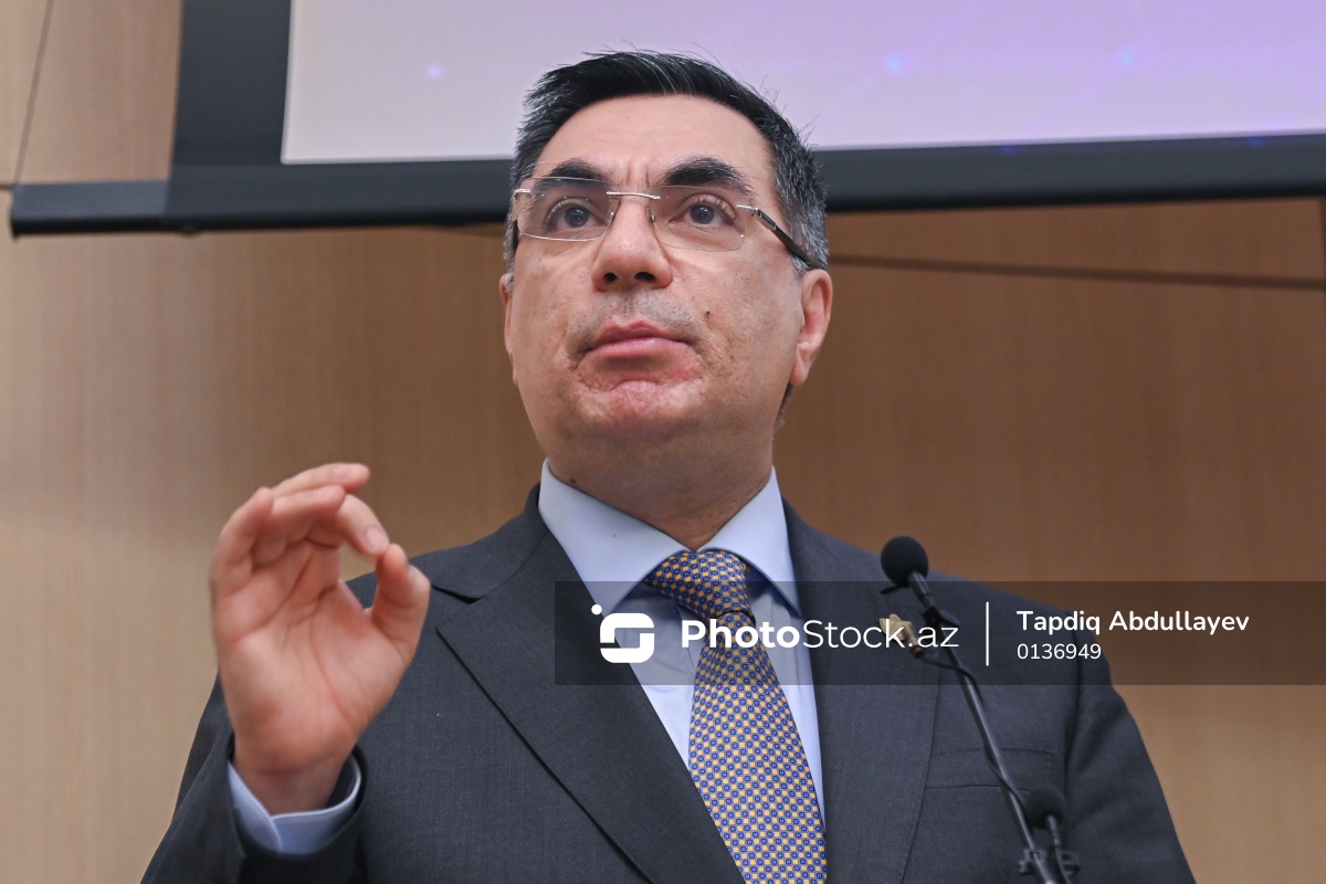 “İnformasiya Təhlükəsizliyi Testləri” laboratoriyasının açılış mərasimində çıxış edən Bakı Ali Neft Məktəbinin rektoru Elmar Qasımov.