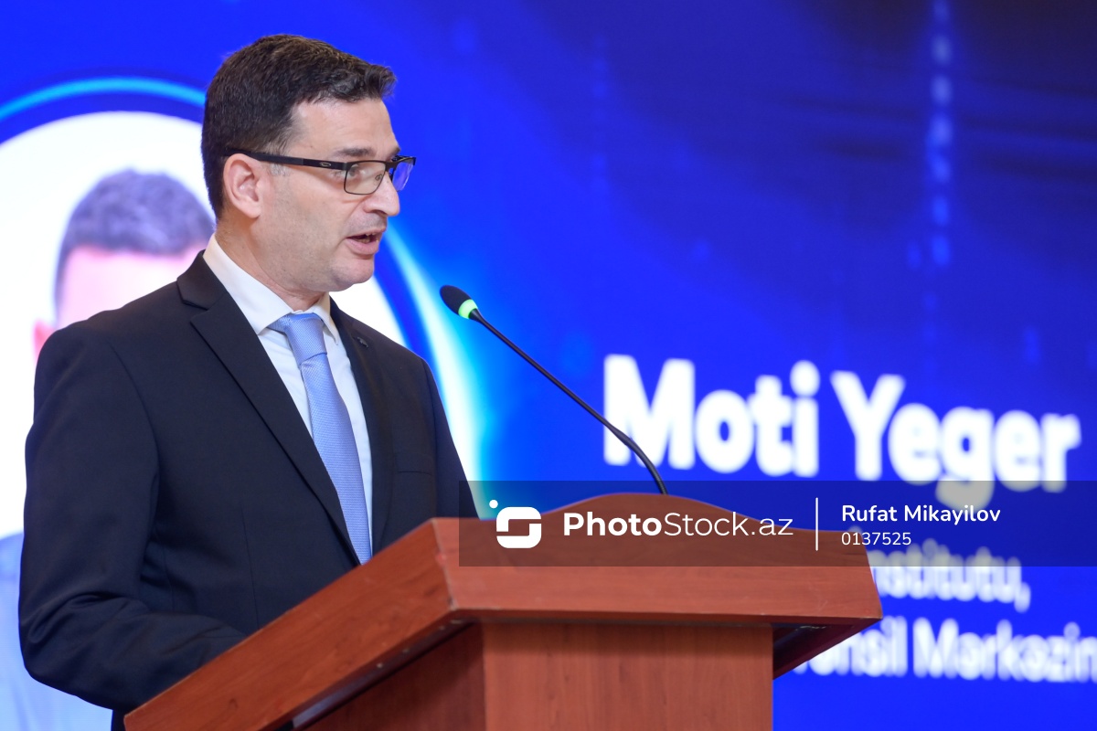 Azərbaycan Kibertəhlükəsizlik Mərkəzinin məzun günündə çıxış edən İsrailin “Technion” Texnologiya İnstitutunun Davamlı Təhsil Mərkəzinin direktoru Moti Yeger.