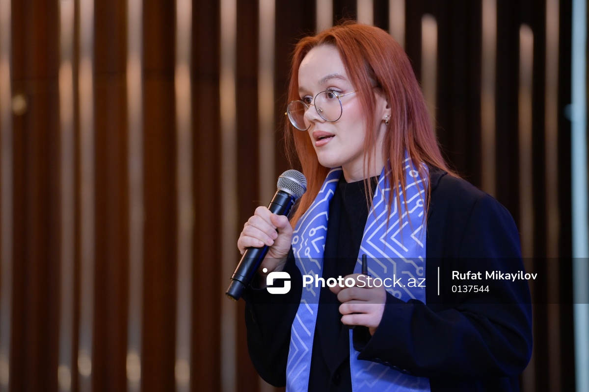 Azərbaycan Kibertəhlükəsizlik Mərkəzinin məzun günündə çıxış edən Mərkəzin məzunu Ülkər Əliyeva.