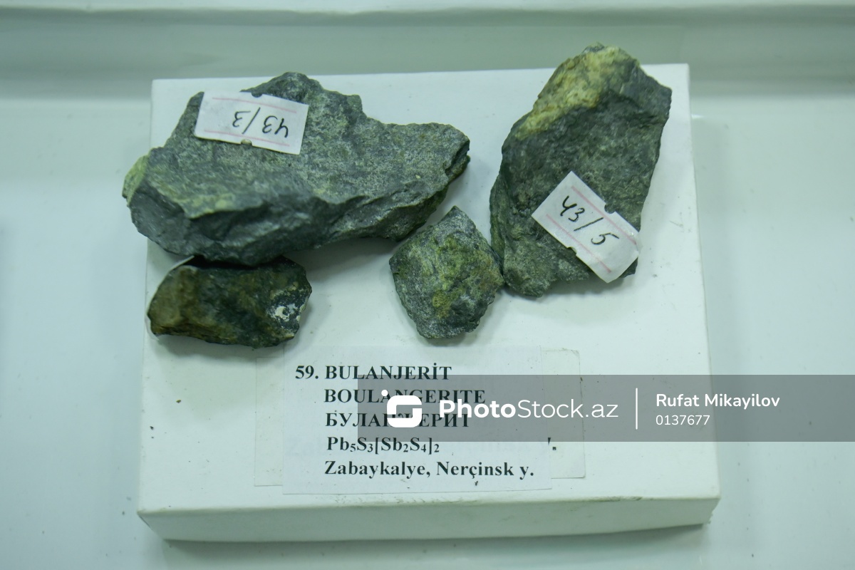 Azərbaycan Dövlət Neft və Sənaye Universitetinin (ADNSU) Mineralogiya Muzeyində nümayiş olunan bulanjerit.