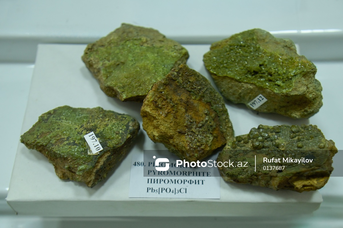 Azərbaycan Dövlət Neft və Sənaye Universitetinin (ADNSU) Mineralogiya Muzeyində nümayiş olunan piromorfit.