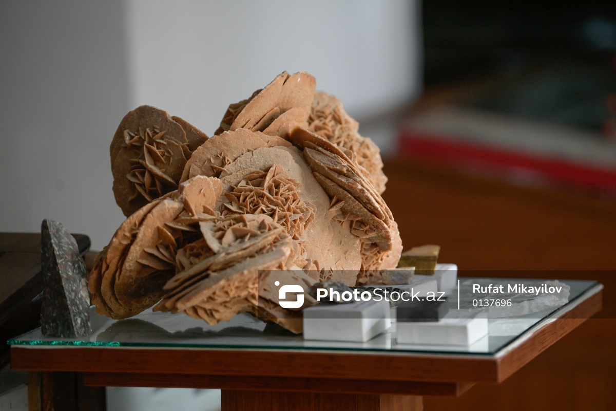 Azərbaycan Dövlət Neft və Sənaye Universitetinin (ADNSU) Mineralogiya Muzeyində nümayiş olunan səhra gülü (Gips).