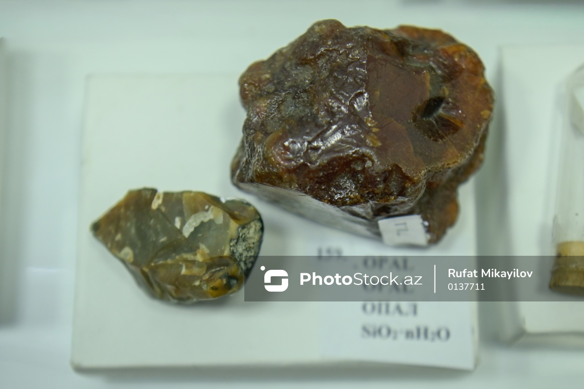 Azərbaycan Dövlət Neft və Sənaye Universitetinin (ADNSU) Mineralogiya Muzeyində nümayiş olunan opal.