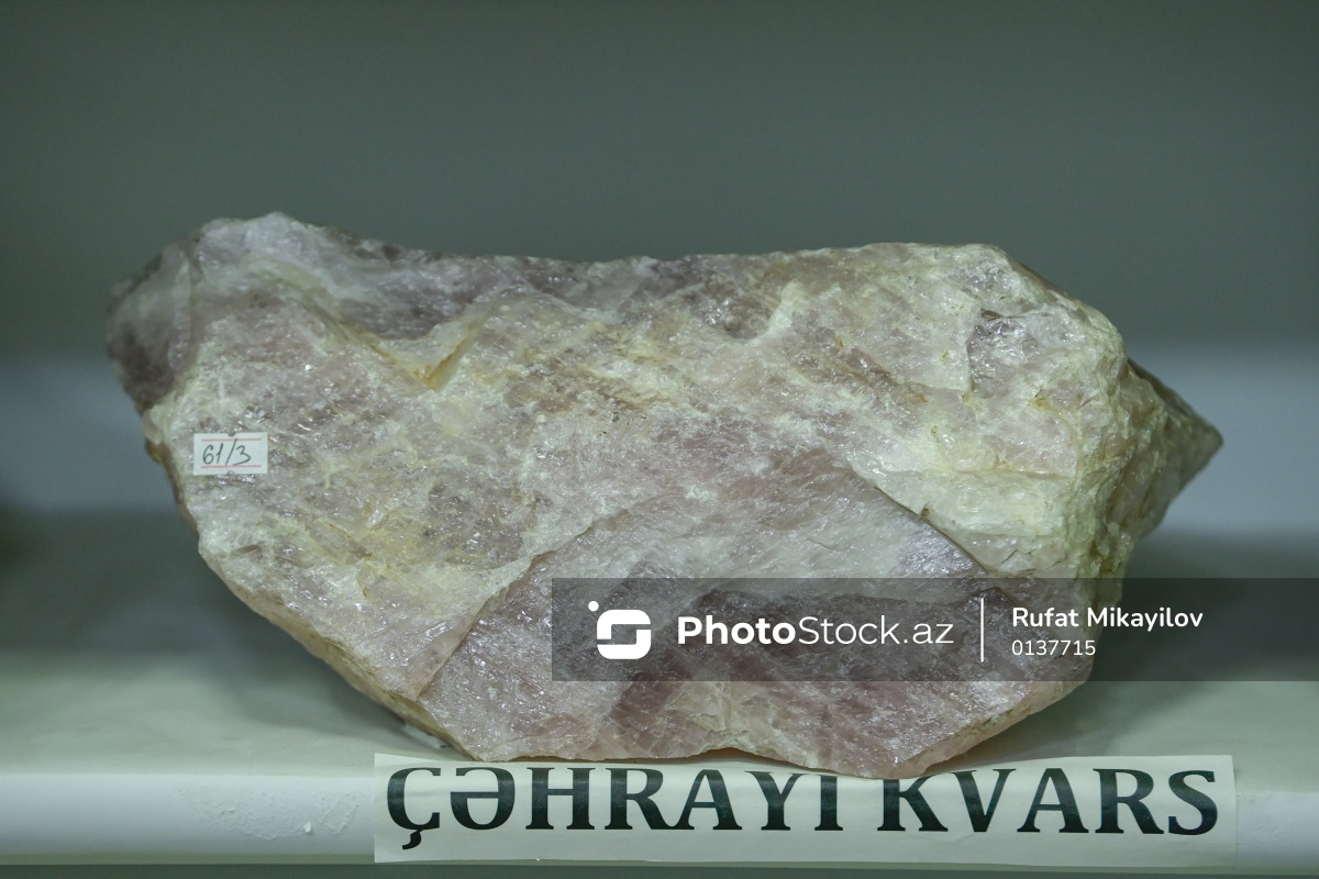 Azərbaycan Dövlət Neft və Sənaye Universitetinin (ADNSU) Mineralogiya Muzeyində nümayiş olunan çəhrayı kvars.