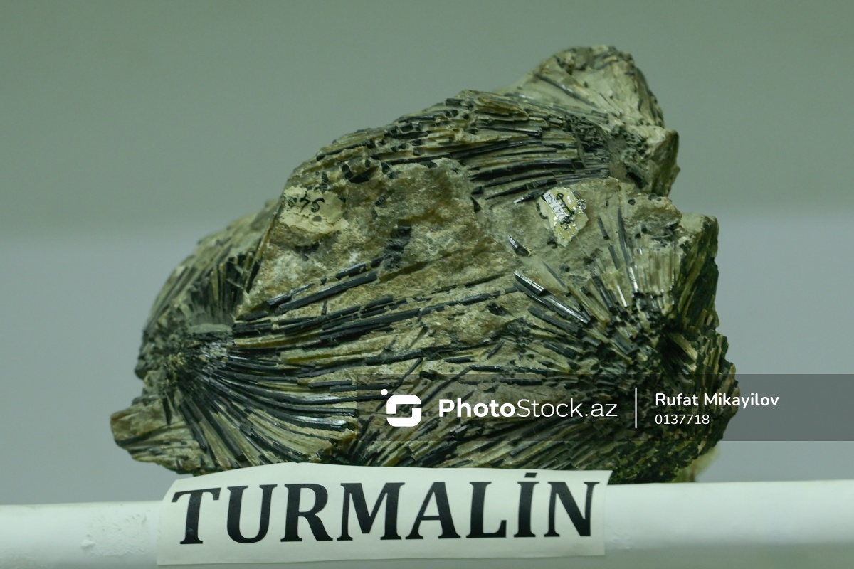 Azərbaycan Dövlət Neft və Sənaye Universitetinin (ADNSU) Mineralogiya Muzeyində nümayiş olunan turmalin.