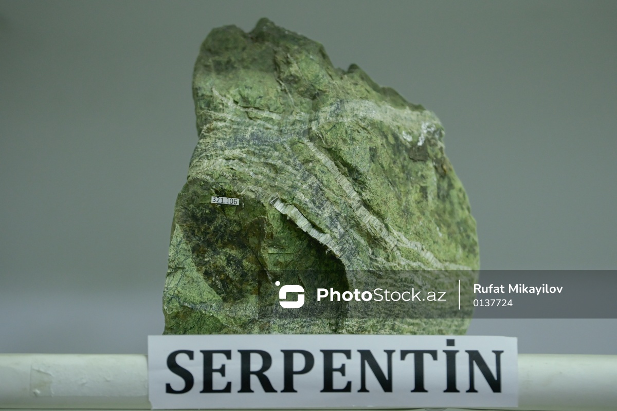 Azərbaycan Dövlət Neft və Sənaye Universitetinin (ADNSU) Mineralogiya Muzeyində nümayiş olunan serpentin.