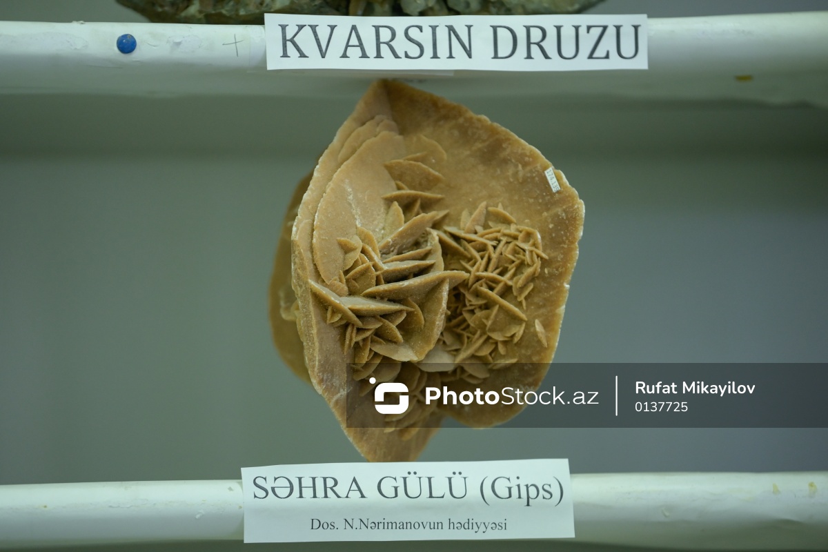 Azərbaycan Dövlət Neft və Sənaye Universitetinin (ADNSU) Mineralogiya Muzeyində nümayiş olunan səhra gülü (Gips).