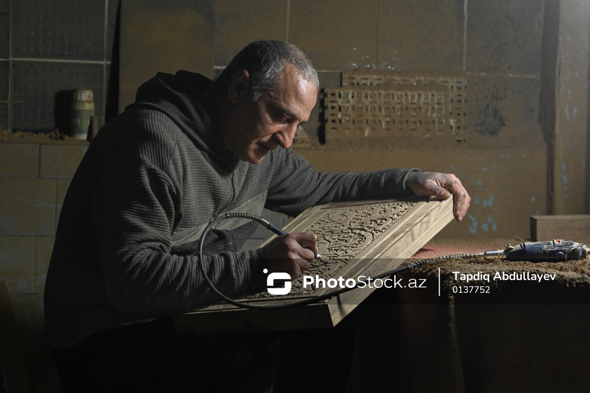 Ağac materiallarından müxtəlif əl işləri hazırlayan Ayaz usta.