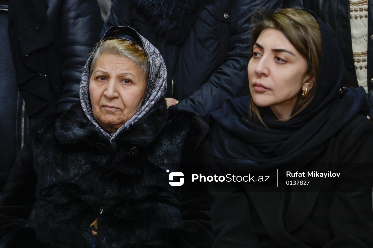Milli Məclisin sabiq deputatı Fəzail Ağamalının dəfn mərasimində iştirak edən həyat yoldaşı Suqra İmanova (sol) və qızı, Milli Məclisin deputatı Günay Ağamalı (sağ).