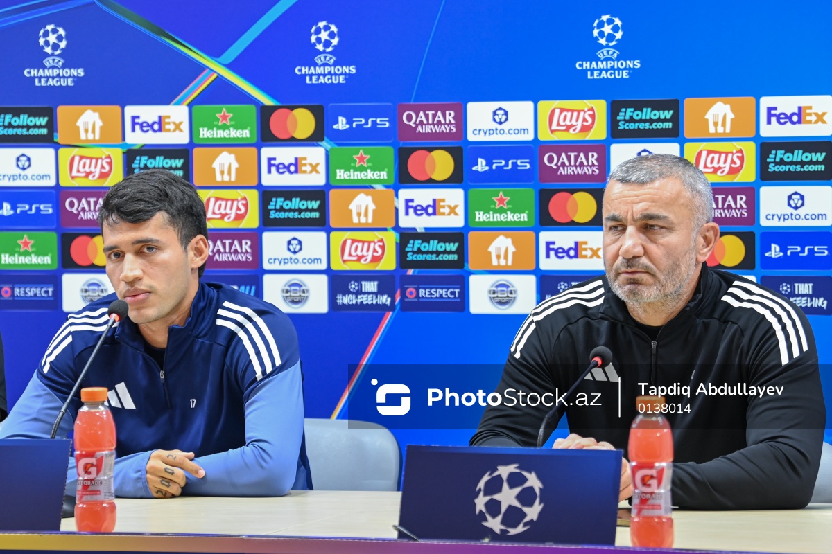 "Qarabağ"ın "Nyukasl" ilə baş tutacaq oyunöncəsi mətbuat konfransında iştirak edən "Qarabağ"ın futbolçusu Kamilo Duran (sol) və komandanın baş məşqçisi Qurban Qurbanov (sağ).