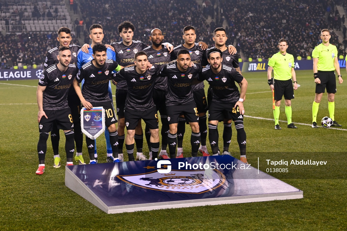 18.02.2026 Tofiq Bəhramov adına Respublika stadionu, UEFA Çempionlar Liqasının "Qarabağ" - "Nyukasl" oyununda "Qarabağ” komandasının oyunçuları (arxa soldan-sağa) Kamilo Duran, Mateuş Koxalski, Bəhlul Mustafazadə, Kevin Medina, Mateus Silva, Pedro Bikalyo, (ön soldan-sağa) Marko Yankoviç, Abdullah Zubir, Coni Montiel, Leandro Andrade, Elvin Cəfərquliyev.