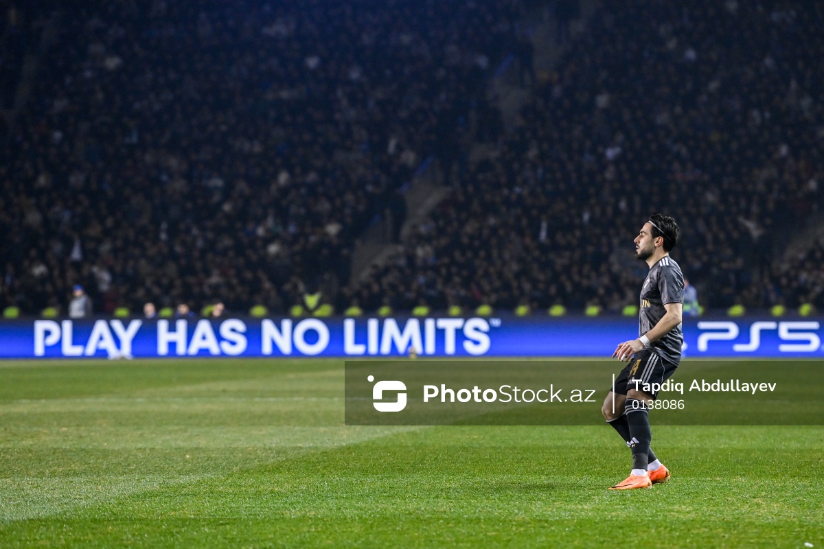 18.02.2026 Tofiq Bəhramov adına Respublika stadionu, UEFA Çempionlar Liqasının "Qarabağ" - "Nyukasl" oyununda "Qarabağ" komandasının oyunçusu Elvin Cəfərquliyev.