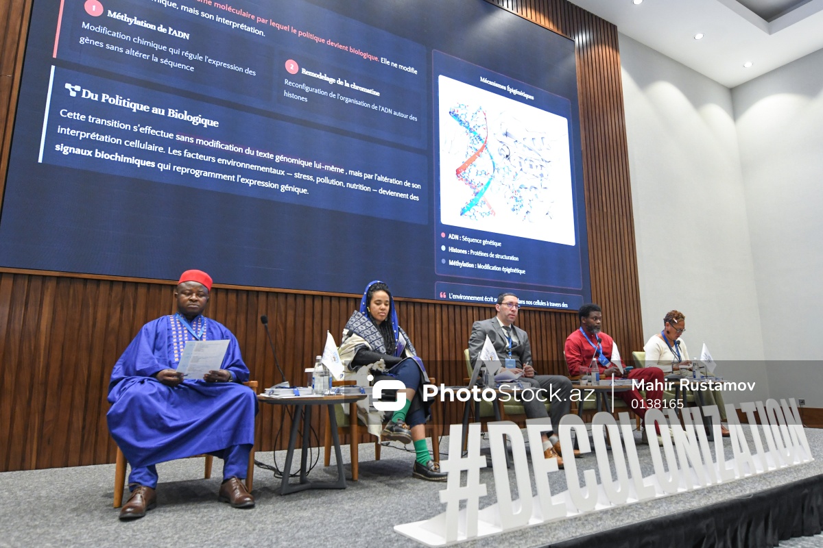 "Neokolonializm və qlobal bərabərsizlik" mövzusunda beynəlxalq konfransda iştirak edən (soldan-sağa) Kesmonds Beynəlxalq Universitetinin rektoru, psixoterapevt, klinik psixoloq və təhsil eksperti Atanqa Dezmond Funvi, "Qara Sivilizasiya" Muzeyinin kuratoru Natali Elizabet Mba Bikoro, Əlcəzairin Üç Universitetini təmsil edən fəlsəfə elmləri doktoru, antropoloq, politologiya sahəsində tədqiqatçı Hişam Daud, antropoloq, "Musée National des Civilisations Noires"un İdarə Heyətinin üzvü, "L"Africaine D"Architecture" platformasının təsisçisi Sename Kofi Aqbocinu və FLNKS-in siyasi bürosunun və Mouvement Océanien Indépendantiste (Yeni Kaledoniya) Məşvərət Şurasının üzvü Orian Sinkon-Trolyu.