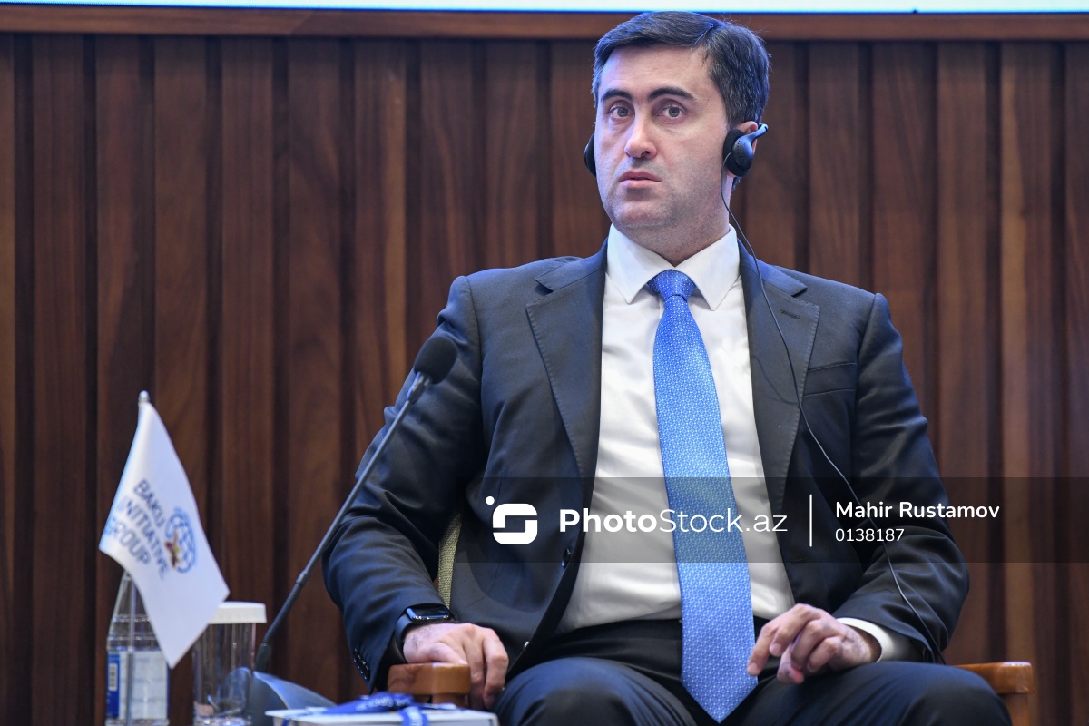 "Neokolonializm və qlobal bərabərsizlik" mövzusunda beynəlxalq konfransda çıxış edən Bakı Təşəbbüs Qrupunun (BTQ) icraçı direktoru Abbas Abbasov.
