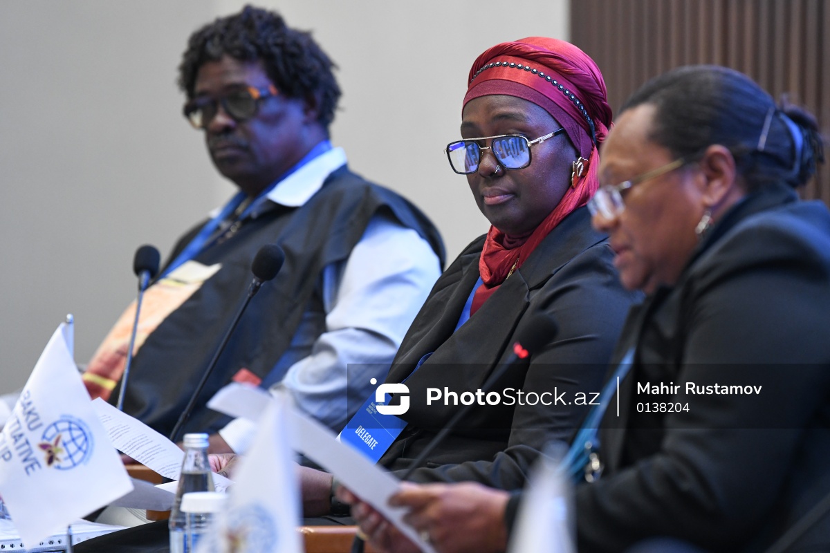 "Neokolonializm və qlobal bərabərsizlik" mövzusunda beynəlxalq konfransda çıxış edən "Mabedja Panafricanistes" təşkilatının prezidenti Saniya Assumani.