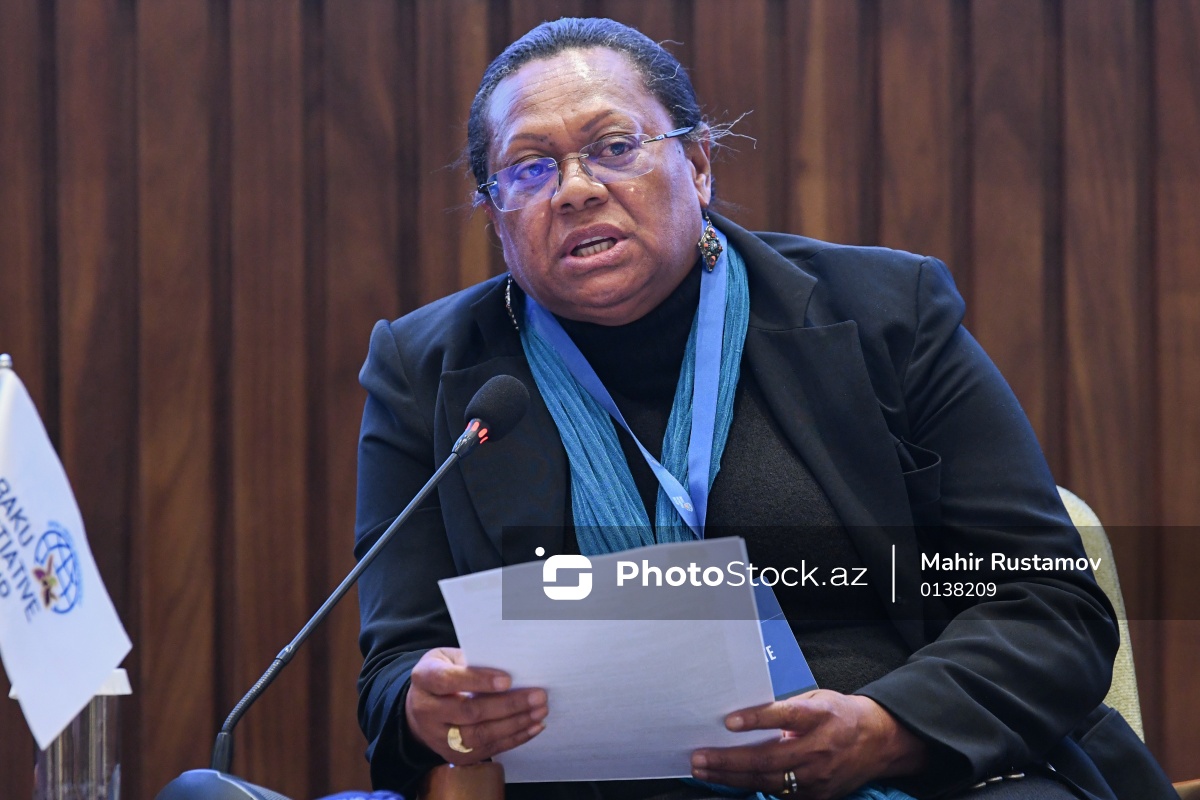 "Neokolonializm və qlobal bərabərsizlik" mövzusunda beynəlxalq konfransda çıxış edən Yeni Kaledoniya parlamentinin Ailə və Qadınların hüquqları komissiyasının sədr müavini Marie Line Sakilia.