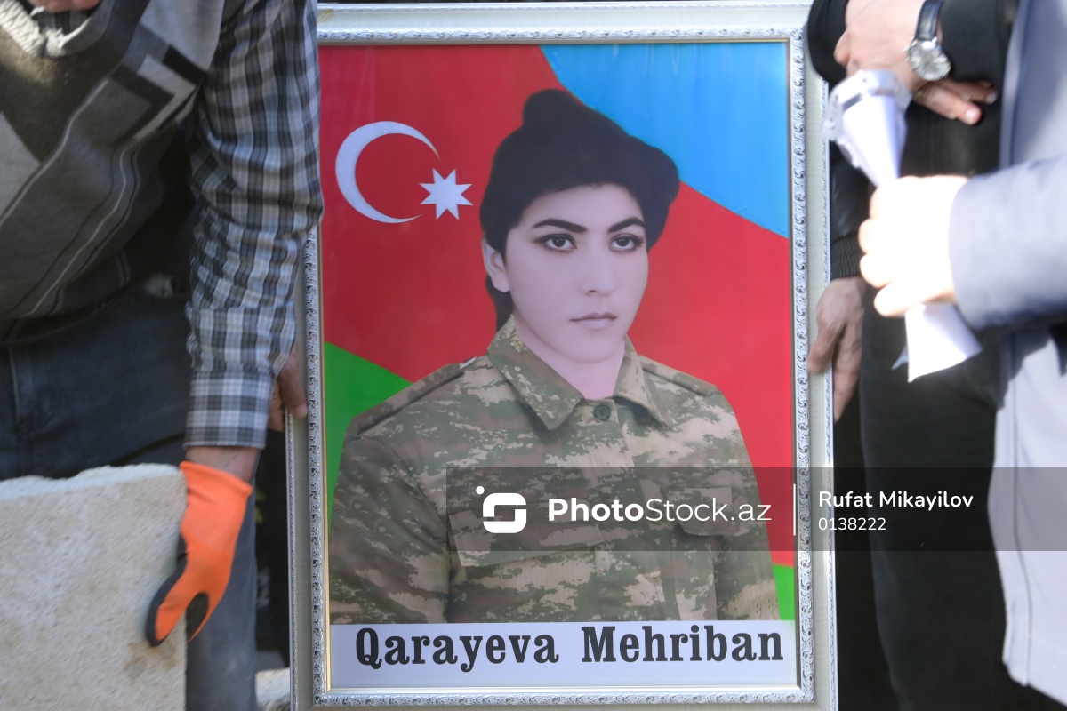 Birinci Qarabağ müharibəsində itkin düşmüş hesab edilən xanım şəhid Mehriban Qarayeva Sumqayıt Şəhidlər xiyabanında dəfn olunub. Dəfn mərasimində şəhidin doğmaları, Sumqayıt şəhərinin rəsmi şəxsləri, hüquq-mühafizə orqanlarının əməkdaşları, hərbçilər və ictimaiyyət nümayəndələri iştirak ediblər. Mehriban Arif qızı Qarayeva 1970-ci ilin martın 27-də Sumqayıt şəhərində anadan olub. 1992-ci il iyulun 9-da Ağdərə rayonunun Sırxavənd kəndi istiqamətində gedən döyüşlər zamanı itkin düşüb.