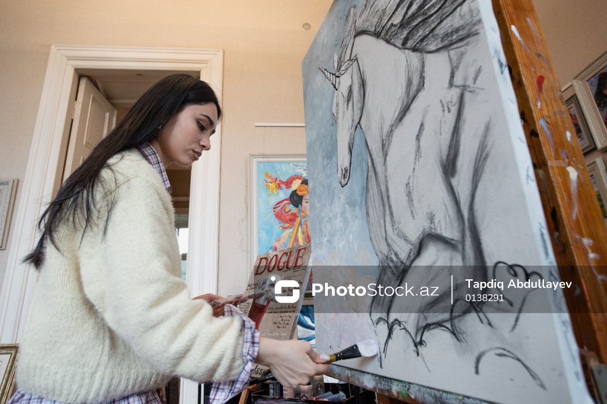 28 yaşlı rəssam Leyla Qurbanova uşaqlıqdan rəssamlığa böyük maraq göstərib. Bu həvəs zamanla peşəkarlığa çevrilərək onun həyatının ayrılmaz hissəsini təşkil edib. Azərbaycan Dövlət Rəssamlıq Akademiyasının rəngkarlıq ixtisasını bitirən gənc rəssam babasından yadigar qalan evdə 2019-cu ildə şəxsi emalatxanasını yaradıb. O, burada həm peşəkar fəaliyyətini davam etdirir, həm də bu sənəti başqalarına öyrədir. Leyla Qurbanova üçün rəssamlıq yalnız şəkil çəkmək deyil, daxildəki bütün hissləri, düşüncələri və yaradıcı ideyaları əsərlərinə ötürmək deməkdir. Onun hər bir əsəri daxili dünyasının ifadəsidir və fərqli texnikalarla hazırlanmış portretlər, mənzərə və konseptual əsərlərdən ibarətdir. Rəssamın fikrincə, hər kəs şəkil çəkməyi öyrənə bilər, amma sənətkar olmaq yalnız daxildən gələn ilham və sevgi ilə mümkündür.