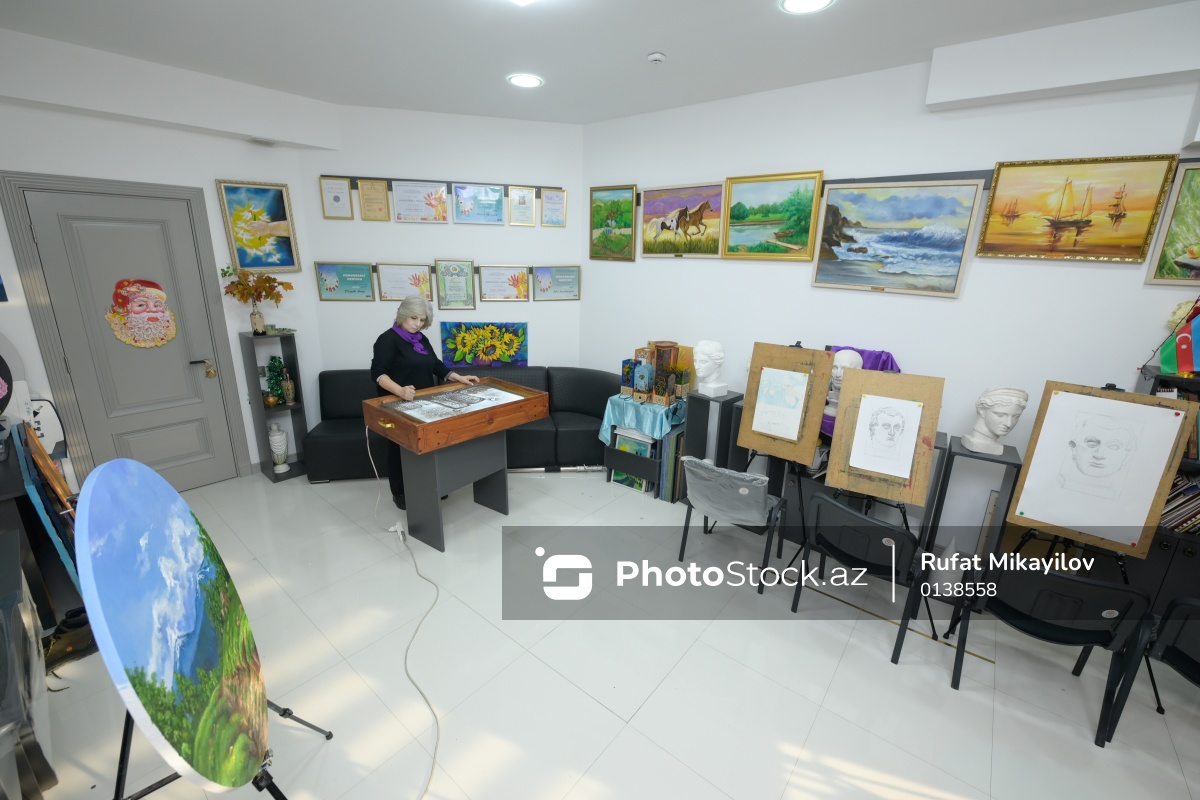 Rəssam Naqiyə Rzayevanın qumla yaratdığı sənət əsərləri
