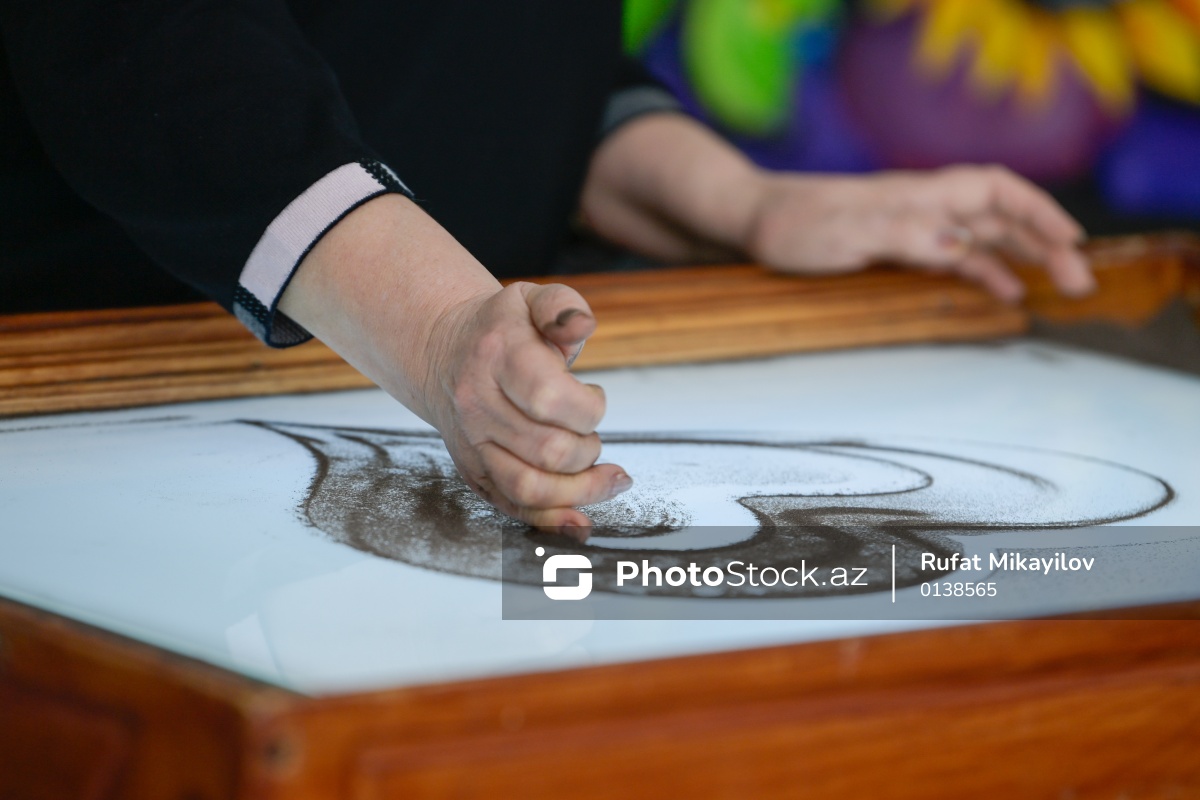 Rəssam Naqiyə Rzayevanın qumla yaratdığı sənət əsərləri